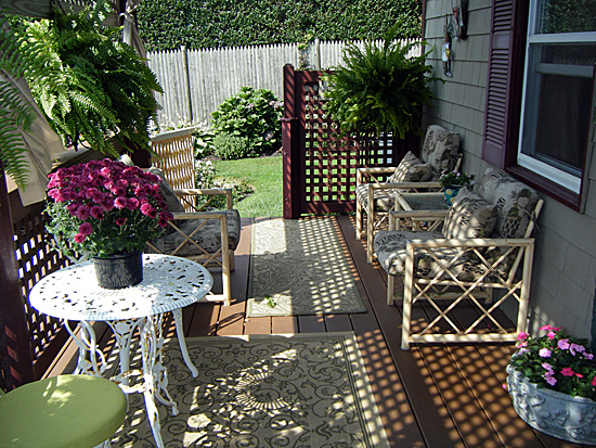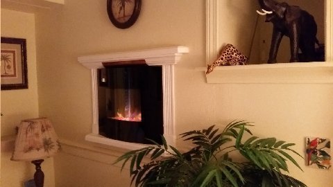 The Garden Terrace room is a cozy suite consisting of 3 small to medium size rooms done in a safari theme carried throughout with a kitchenette area, and private large shower bath. Your own private cobblestone terrace area provides additional space to enjoy, making the Garden terrace room a popular choice for my guests. The bedroom has an electric fireplace that provides a warm glow on those cool Newport nights. In the winter, it provides a lovely warmth and a cozy atmosphere. A private outside entrance into the suite ensures welcome privacy. The Garden terrace room is a favorite at Murray House.